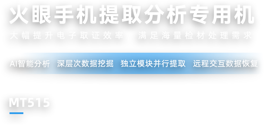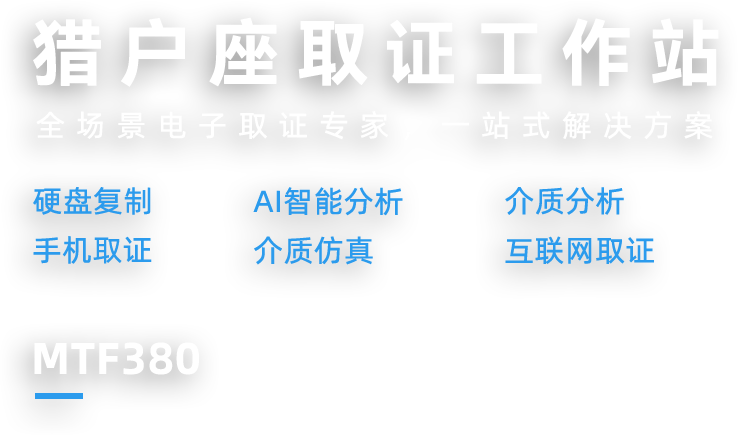 针对具备数据信息存储功能的台式机、笔记本电脑、移动终端和物联网设备等电子设备进行镜像加载,数据恢复、过滤和分析。